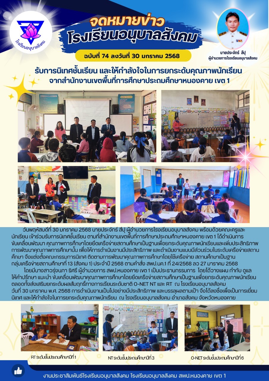 รับการนิเทศชั้นเรียน และให้กำลังใจในการยกระดับคุณภาพนักเรียน จากสพป.นค.1