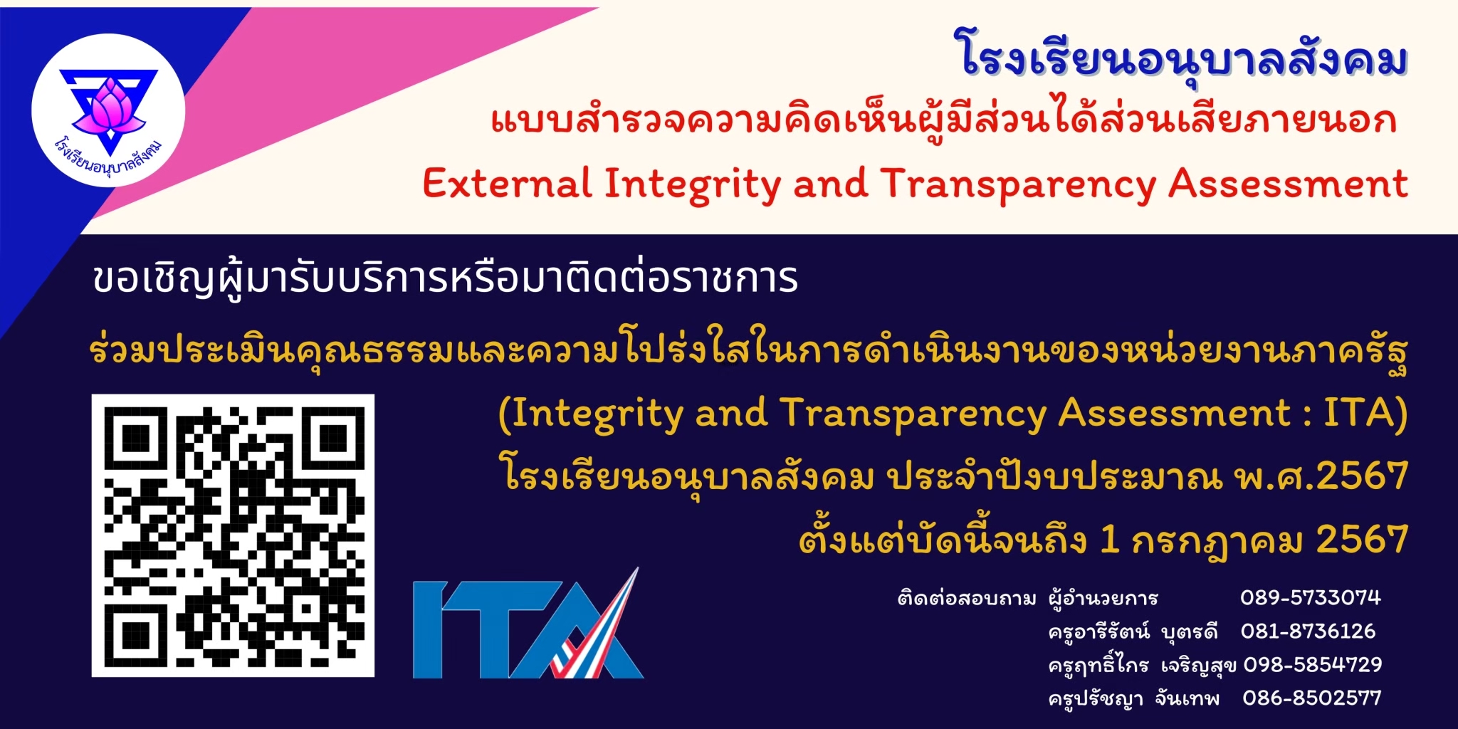 ประกาศเจตจำนงสุจริตการบริหารงานโรงเรียนบ้านนาดงและประกาศเจตนารมณ์ งดรับ งดให้ของขวัญ 2567