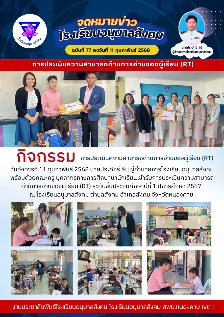 การสอบ RT ปีการศึกษา 2567 ระดับชั้นประถมศึกษาปีที่ี 1 สนามโรงเรียนอนุบาลสังคม