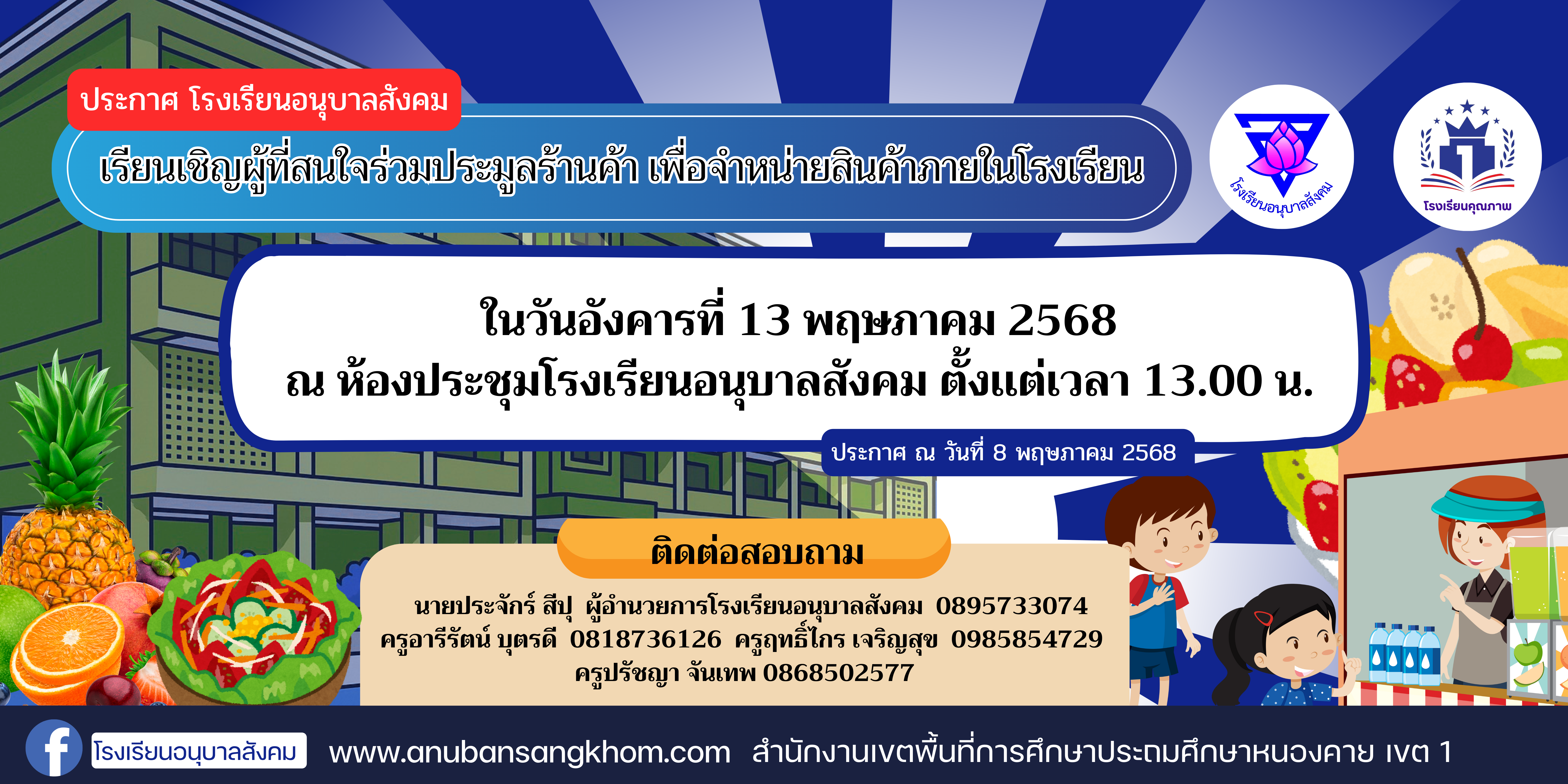 เชิญผู้ที่สนใจร่วมประมูลร้านค้าเพื่อจำหน่ายสินค้าภายในโรงเรียน
