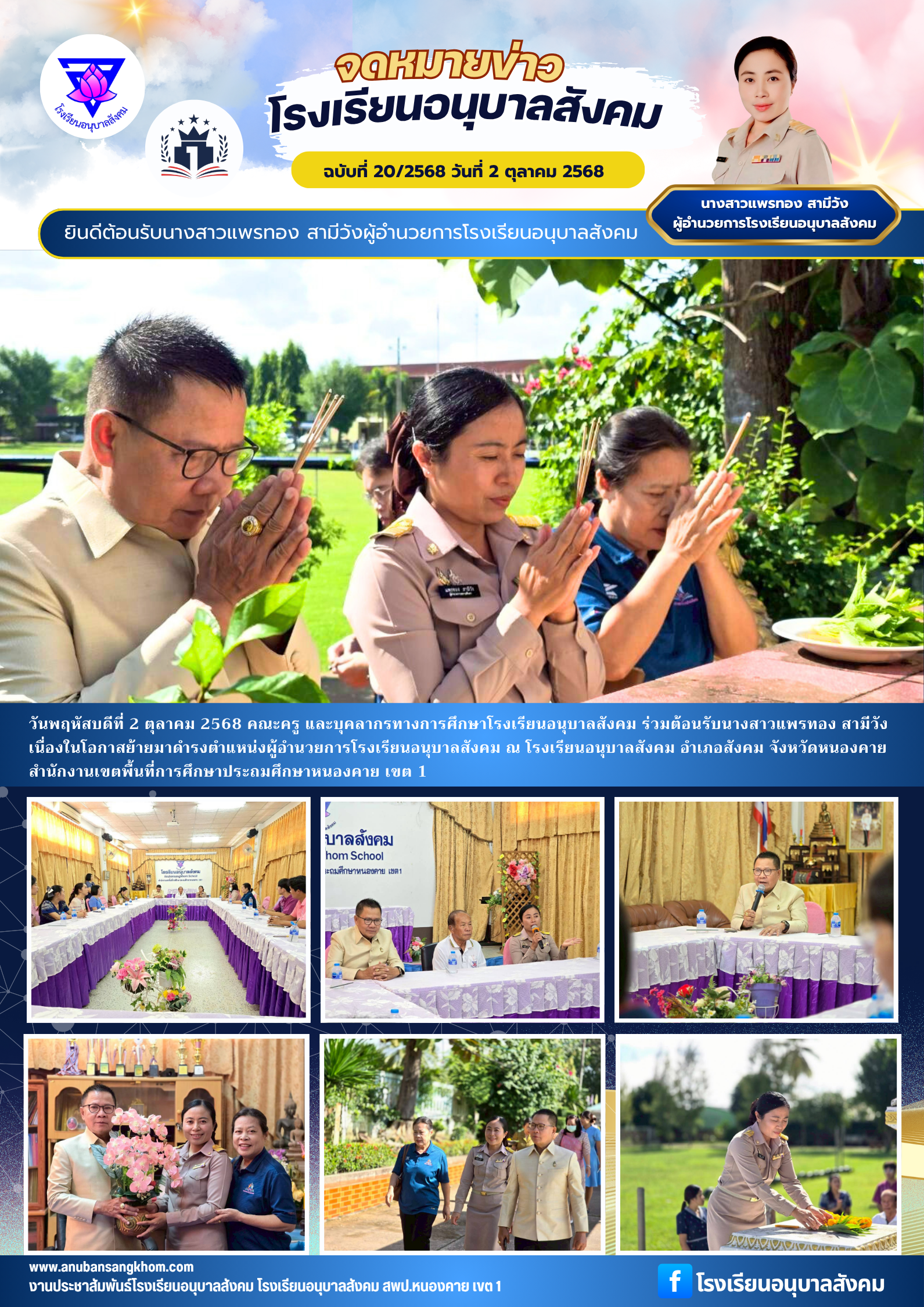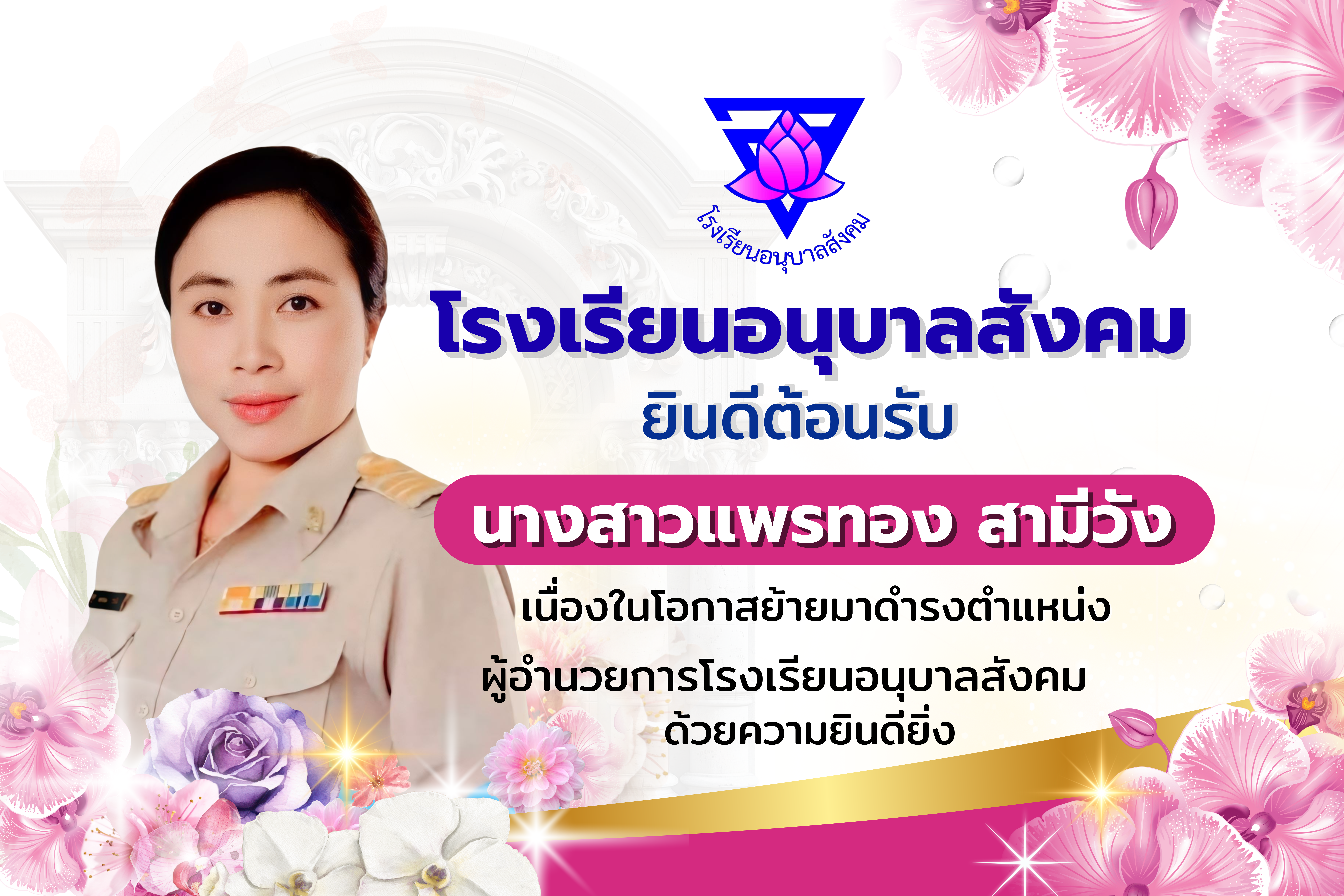 ยินดีต้อนรับนางสาวแพรทอง สามีวังผู้อำนวยการโรงเรียนอนุบาลสังคม