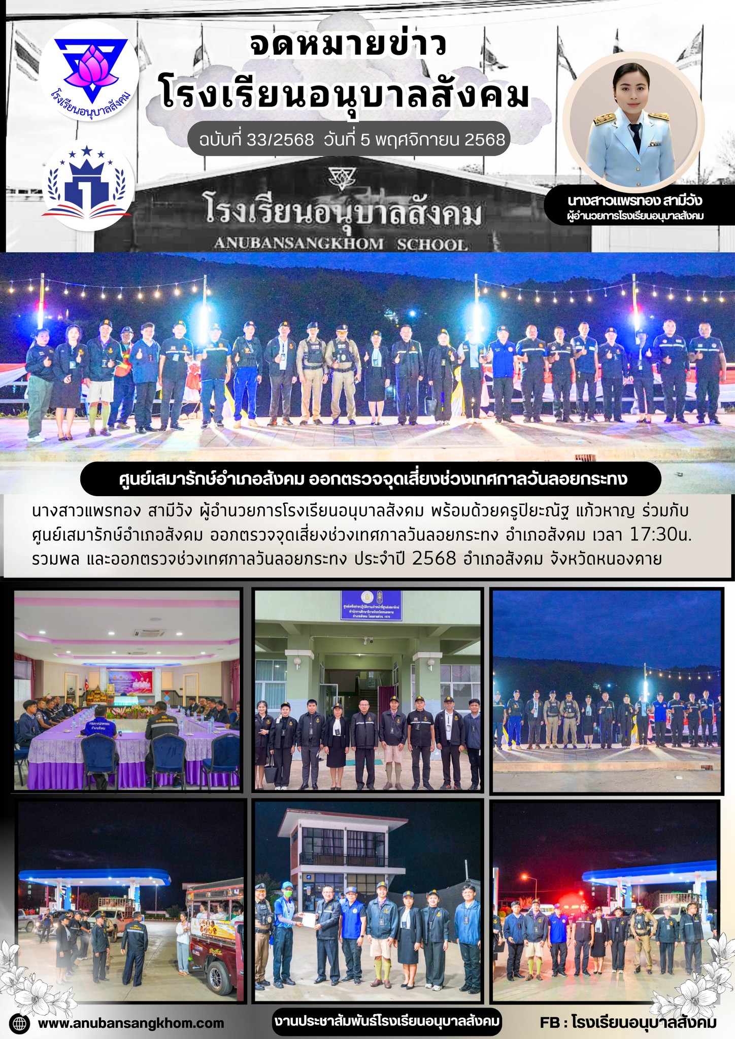 ศูนย์เสมารักษ์อำเภอสังคม ออกตรวจจุดเสี่ยงช่วงเทศกาลวันลอยกระทง