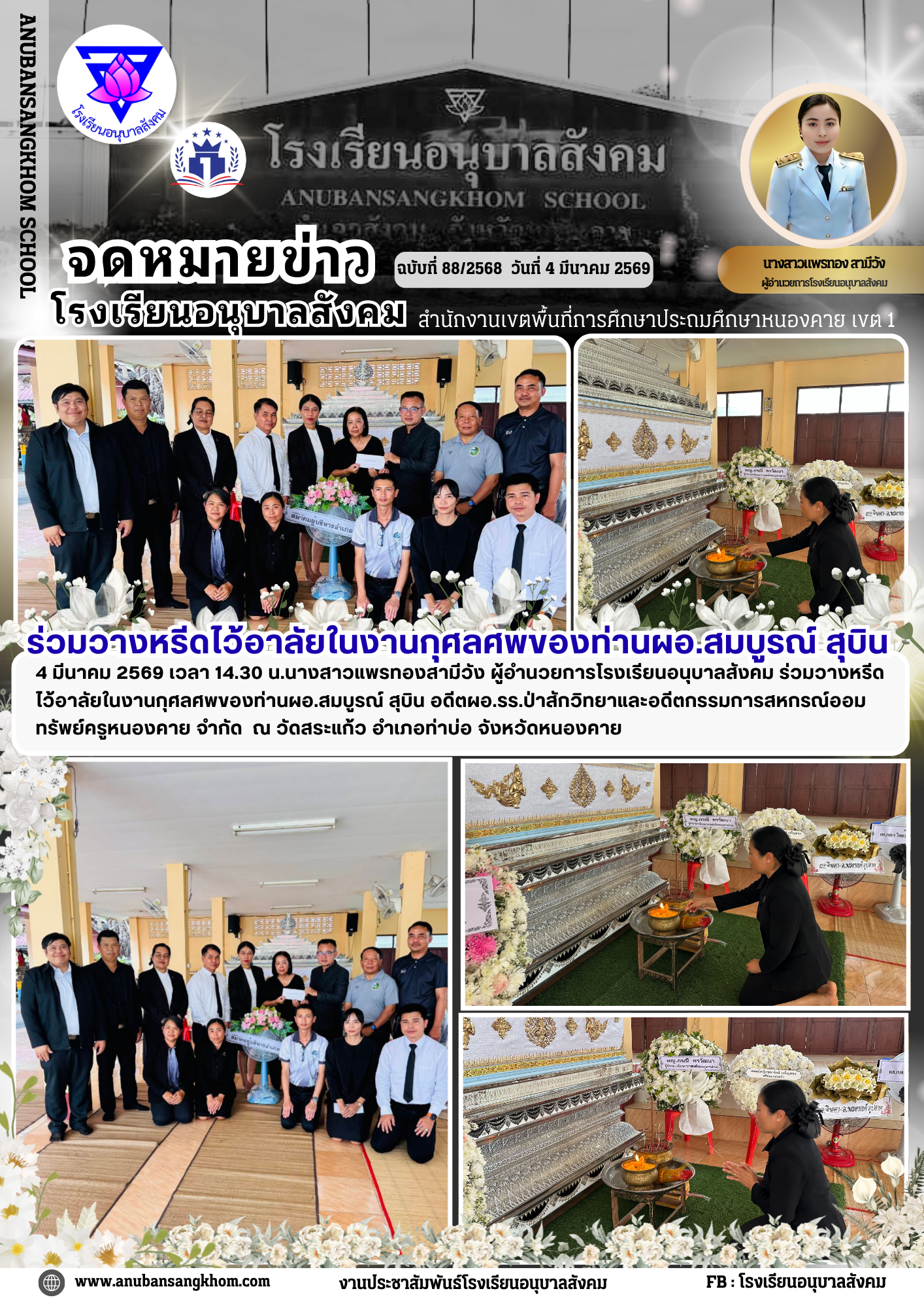 ร่วมวางหรีดไว้อาลัยในงานกุศลศพของท่านผอ.สมบูรณ์ สุบิน