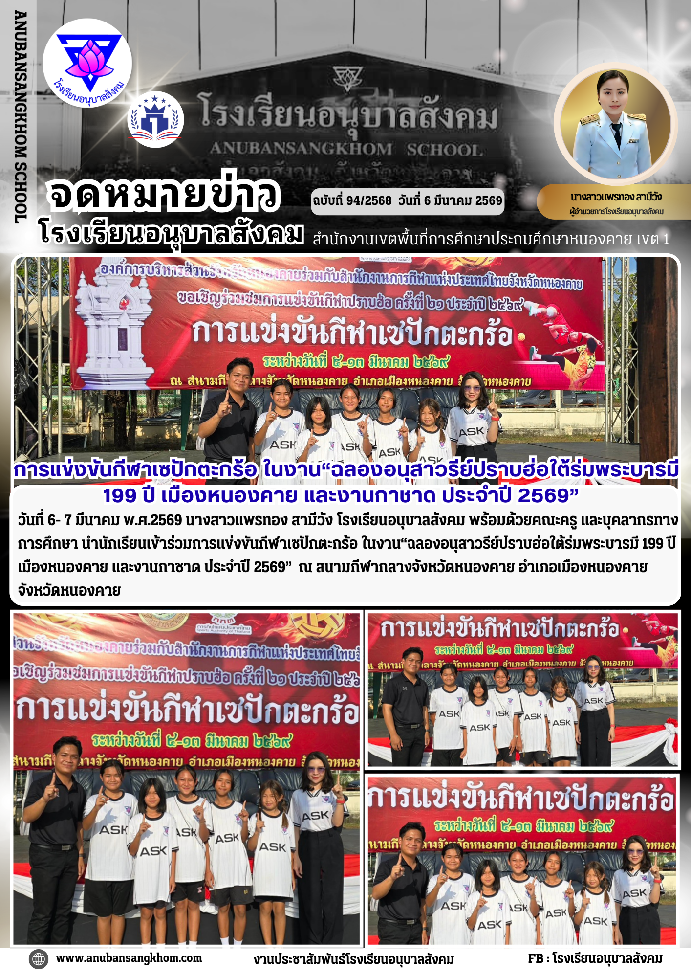 การแข่งขันกีฬาเซปักตะกร้อ ในงาน“ฉลองอนุสาวรีย์ปราบฮ่อใต้ร่มพระบารมี 199 ปี เมืองหนองคาย และงานกาชาด ประจำปี 2569”